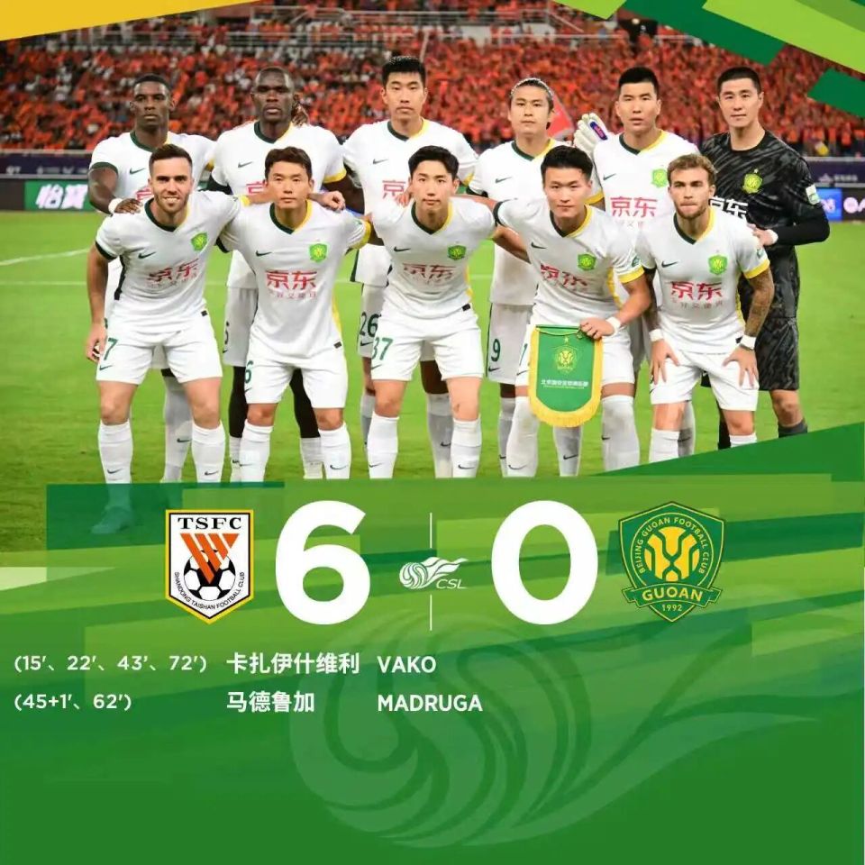 8月31日,在2025华润饮料中超联赛第23轮比赛中,北京国安客场0-6负于山东泰山。